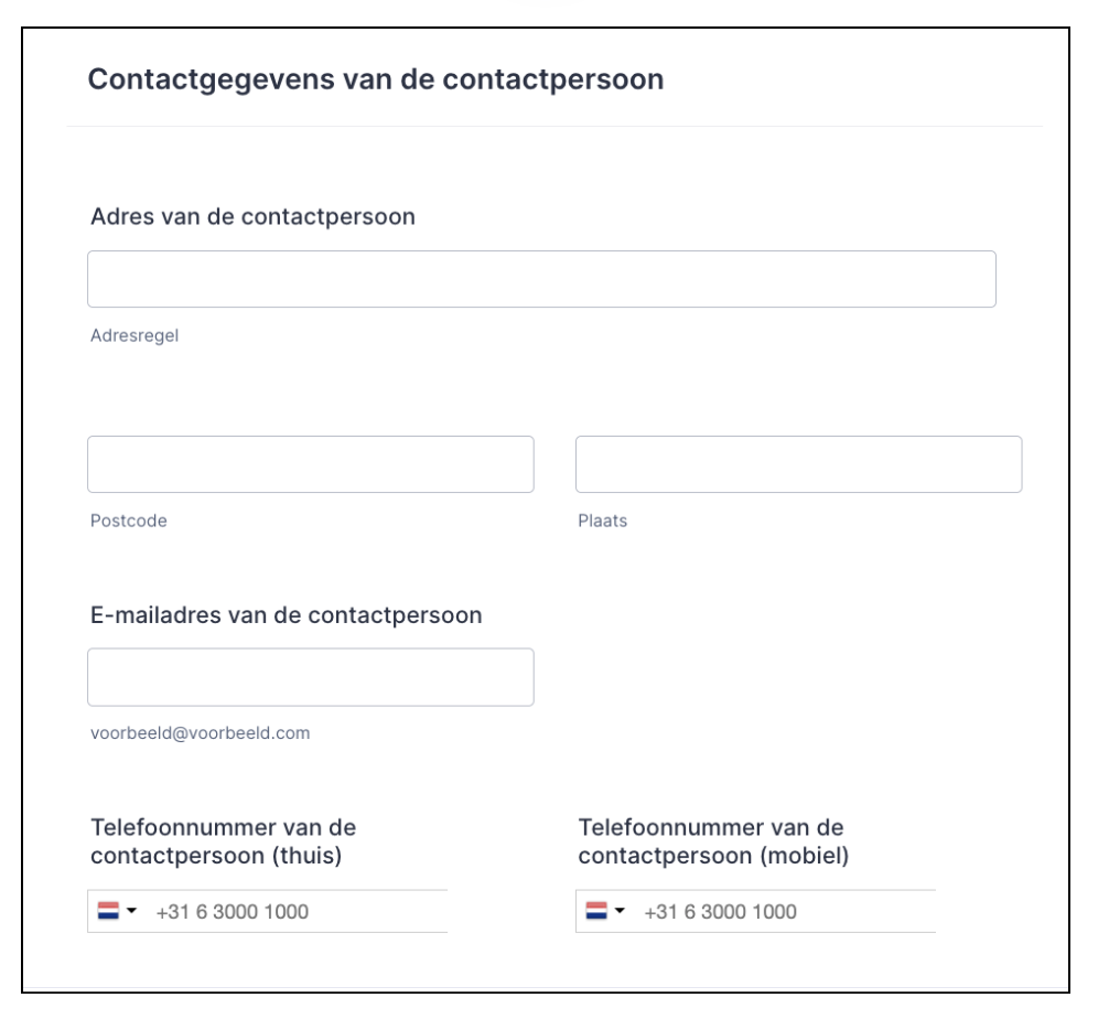 Vul de gegevens in van een partner of naaste contactpersoon. Deze persoon kan indien nodig worden benaderd in verband met uw registratie.
